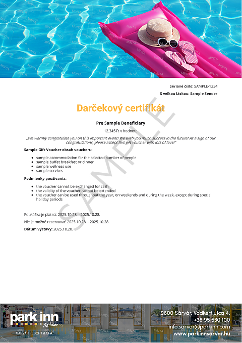 Voucher je možné uplatniť na služby v našom hoteli v hodnote uvedenej na voucheri.